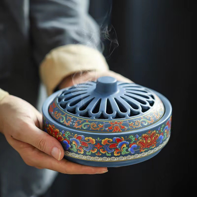 Large Enamel Cloisonné Incense Burner Creative Home Incense Burner Ornament Incense Tablet Burner Tea Room with Lid